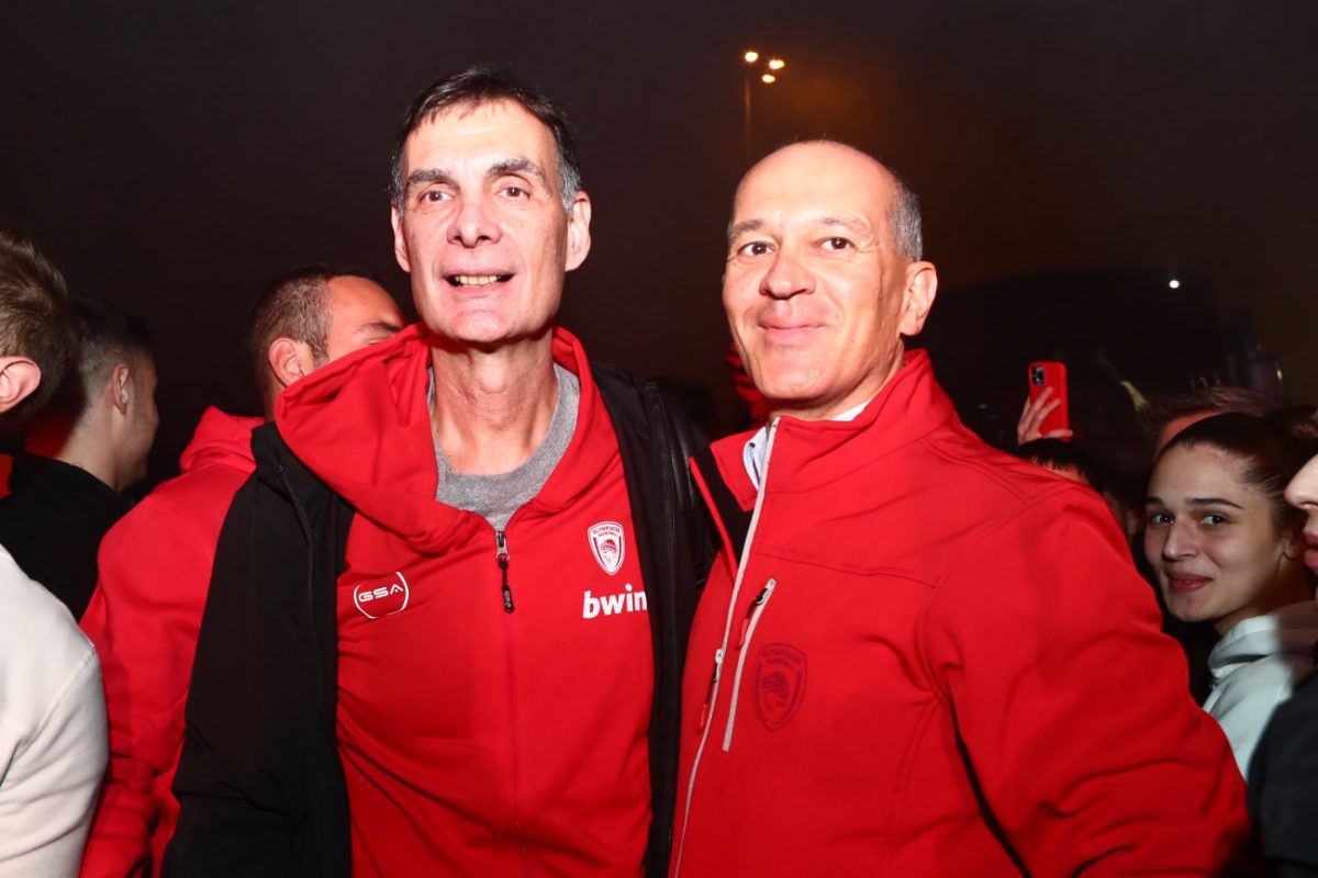 Οι οπαδοί του Ολυμπιακού βρέθηκαν στο Στάδιο Ειρήνης και Φιλίας για να αποθεώσουν την αποστολή μετά τη νίκη στο ΟΑΚΑ.