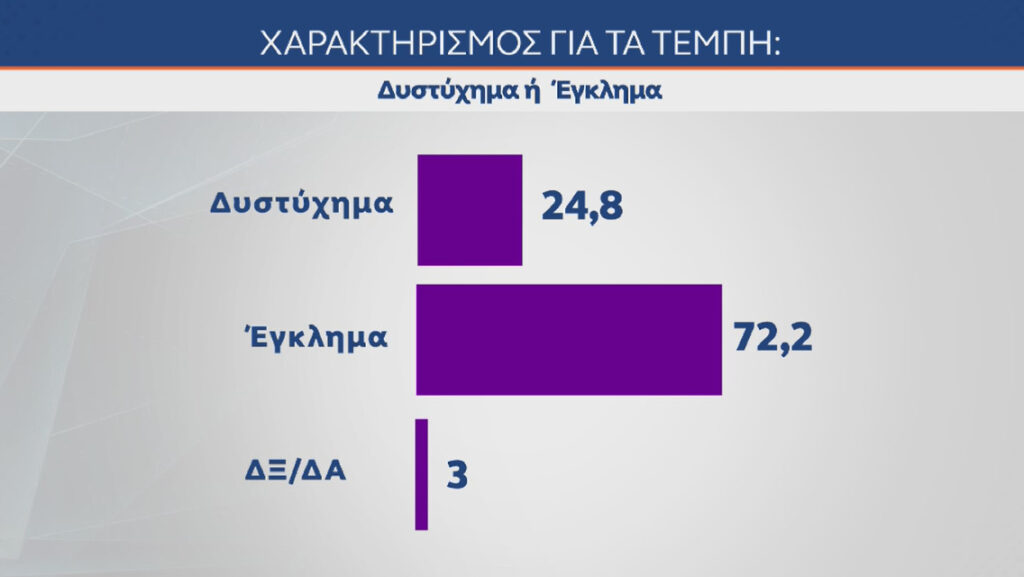 Αυτό που συνέβη στα Τέμπη χαρακτηρίζεται από τους πολίτες σε ποσοστό 72% ως «έγκλημα», σε νέα δημοσκόπηση της MRB για λογαριασμό του OPEN.