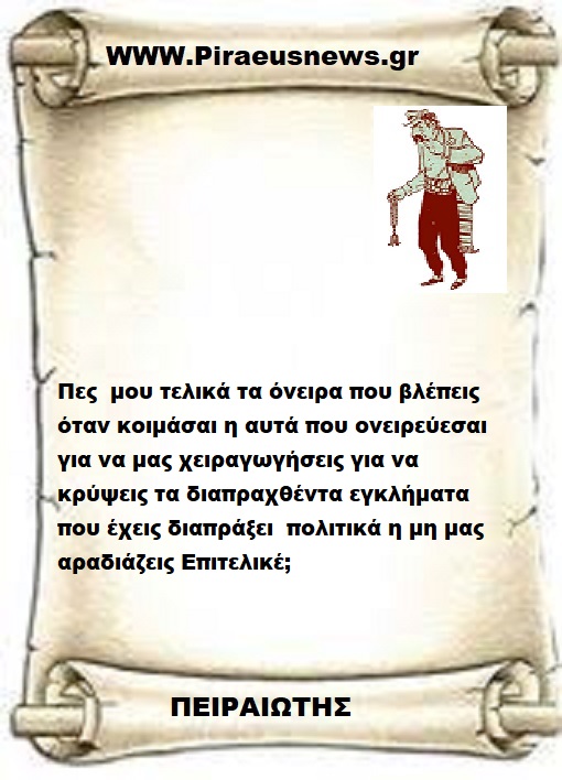 Ξύπνα λοιπόν γιατί πρέπει να σου θυμίσω το βασικότερο που σου φεύγει και από το μυαλό σου και την συνείδηση σου ότι Ο Λαός είναι μπροστά και εσύ υπηρέτης του κατάλαβες ;