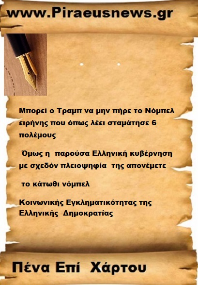 Η πλειονότητα των Ελλήνων Πολιτών μετά από 6 χρόνια διακυβέρνησης αυτού του τόπου από συγκεκριμένη παράταξη αποφάσισε να απονείμει στην Κυβέρνηση και τον επιτελικό Αρχηγό της το Νόμπελ