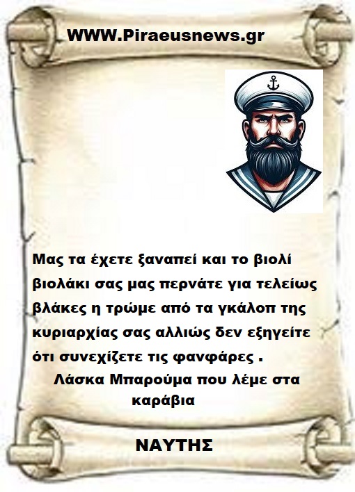 <<ΛΑΣΚΑ ΜΠΑΡΟΥΜΑ >> και επειδή και το κράτος είναι σαν το πλοίο η καλλίτερα η κυβέρνησή σας είναι σαν το πλοίο Λάσκα μπαρούμα και δρόμο από την Πατρίδα μας .