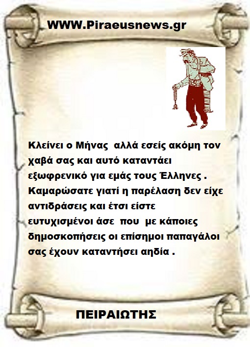 Αυτά για να κλείσουμε αυτές τις λίγες γραμμές και ειδικά αυτόν τον Μήνα που τουλάχιστον μας δίδαξε πάρα πολλά εκτός από εσάς που η μόνη διδαχή είναι η αλαζονεία και τίποτα άλλο .