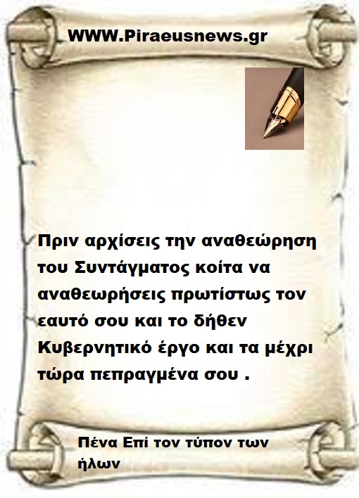 Οπότε για να κλείσω αυτές τις γραμμές πρώτα αναθεώρησες την στάση σου και την κυβερνητική σου πορεία και μετά αναθεωρείς μέγα Επιτελικέ μου .