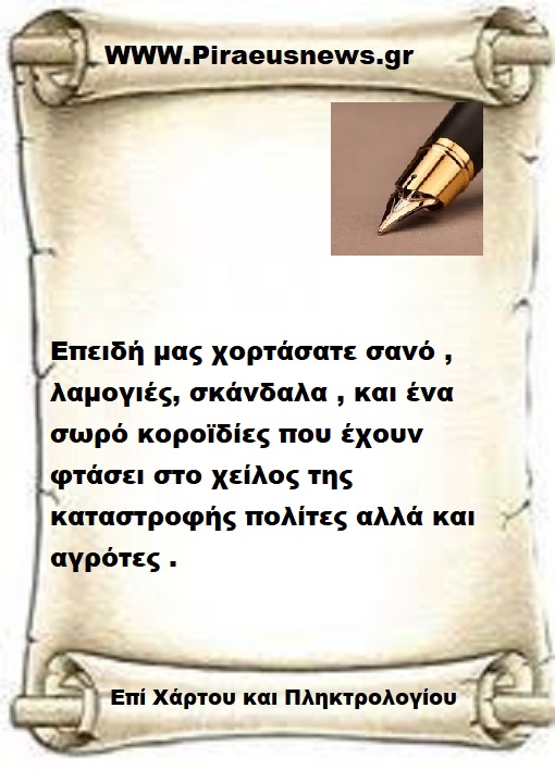 Μια Ελλάδα γεμάτη σκάνδαλα και εσύ συνεχίζεις τους κομπασμούς και μάζεψε τα παπαγαλάκια σου να μην μας τα πρήζουν λιβανίζοντας σε .