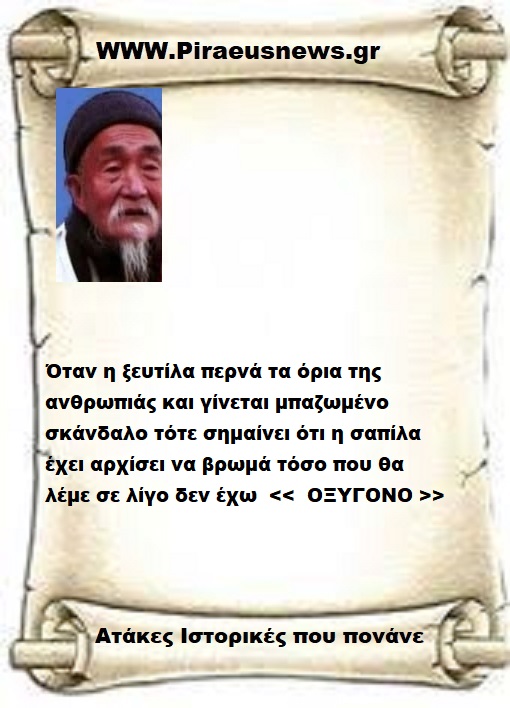 Όταν η ξευτίλα περνά τα όρια της ανθρωπιάς και γίνεται μπαζωμένο σκάνδαλο τότε σημαίνει ότι η σαπίλα έχει αρχίσει να βρωμά τόσο που θα λέμε σε λίγο δεν έχω  <<  ΟΞΥΓΟΝΟ >>