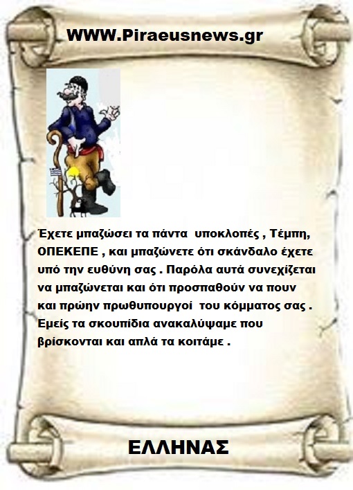 Κάποια στιγμή σταμάτα επιτελικέ εσύ και τα λιβανιστήρια σου να προσπαθείτε να μπαζώνετε τα πάντα ακόμη και όποιον τολμήσει να μιλήσει και να σας επιστήσει τα λάθη που κάνετε .