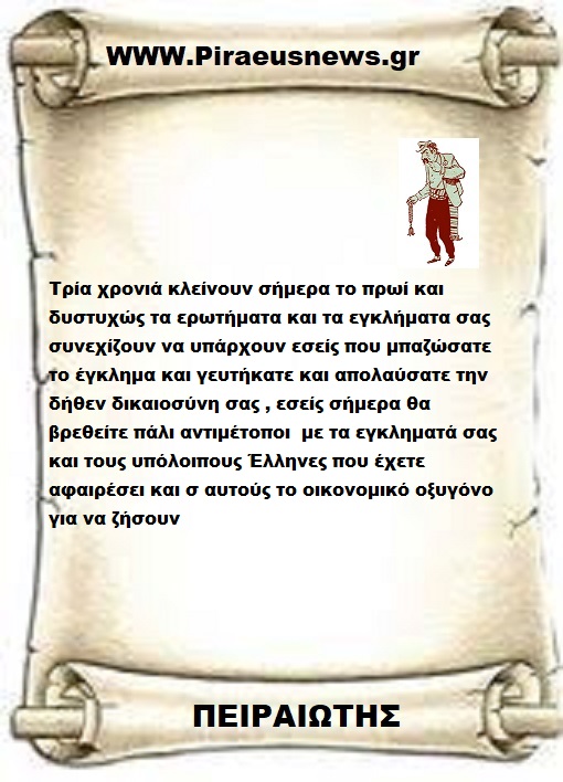 Όμως κάποια στιγμή θα ξεσκεπαστούν όλα και τότε θα νιώσετε την ανάσα των εξοργισμένων Ελλήνων .