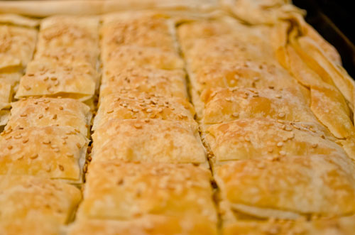 Απλώνω τη γέμιση και κλείνω με άλλα δύο φύλλα.