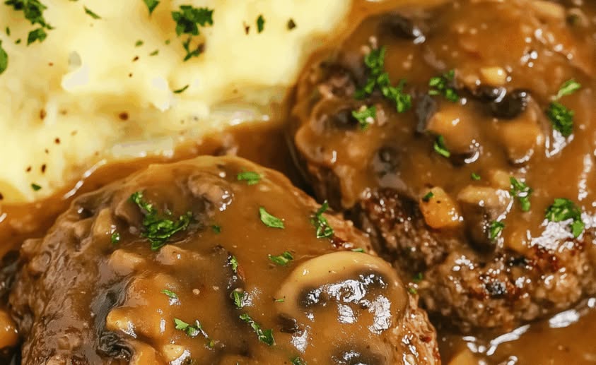 Σερβίρισμα: Σερβίρετε τα μπιφτέκια πάνω σε ζεστό πουρέ πατάτας, περιχύνοντας με άφθονη σάλτσα μανιταριών.