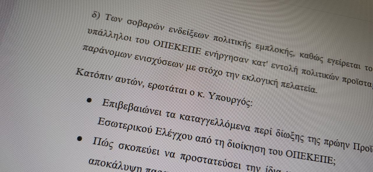 Ένα ανησυχητικό μοτίβο προκύπτει από την πορεία των ερωτήσεων που έχει καταθέσει η κοινοβουλευτική ομάδα της Νέας Αριστεράς προς το υπουργείο Αγροτικής Ανάπτυξης και Τροφίμων για την υπόθεση του ΟΠΕΚΕΠΕ.