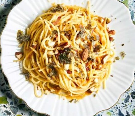 - Πασπαλίζουμε με τα αμύγδαλα και τα φύκια και σερβίρουμε αμέσως.