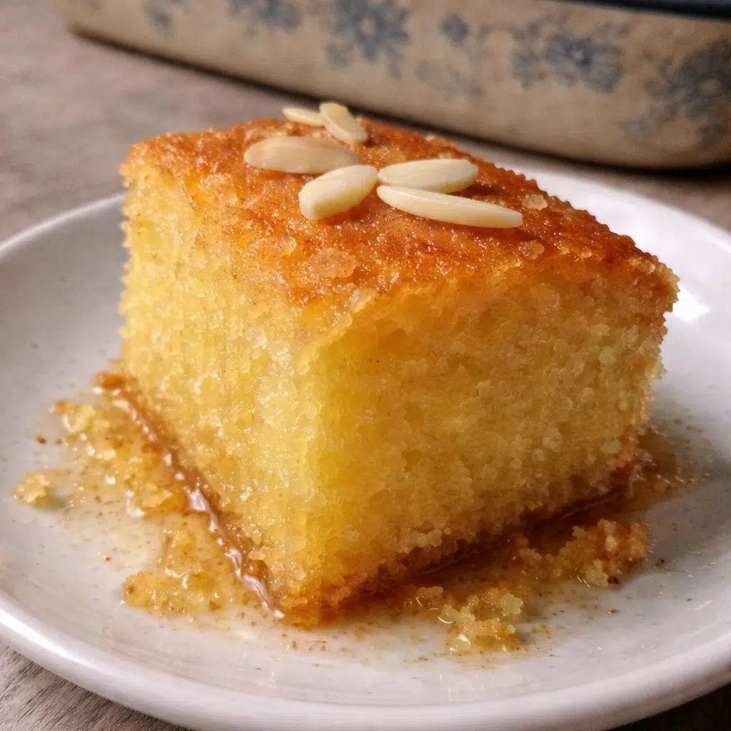 Με το γλυκό πλέον κρύο και το σιρόπι καυτό, αρχίζουμε να περιχύνουμε το σάμαλι σιγά σιγά. Δεν το ρίχνουμε απότομα όλο μαζί. Δίνουμε χρόνο στο γλυκό να το απορροφήσει, ώστε να ποτιστεί σωστά παντού. Αφού τραβήξει όλο το σιρόπι, το αφήνουμε για περίπου 15 λεπτά να σταθεί και μετά το χαράζουμε σε κομμάτια. Αν θέλουμε, στολίζουμε κάθε κομμάτι με λίγα αμύγδαλα φιλέ.