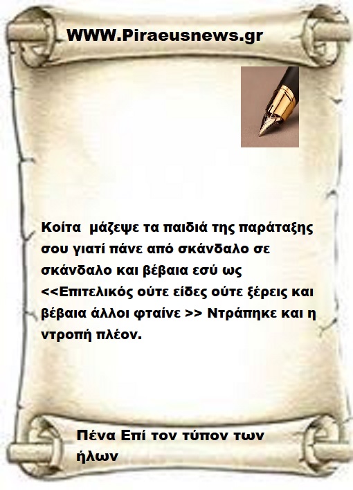 Ντράπηκε και η ντροπή με τα κατορθώματα σας και εγώ απλά σκύβω ευλαβικά στα θύματα των Τεμπών και επί πλέον στους αδικοχαμένους του νέου σκανδάλου του ΟΠΕΚΕΠΕ .
