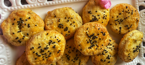 -Τοποθετούμε τα μπισκότα στο ταψί με τη λαδόκολλα, τα αλείφουμε από πάνω με το αυγό (χτυπημένο), πασπαλίζουμε με μαυροκούκι και ψήνουμε για περίπου 20 λεπτά μέχρι να ροδίσουν τα μπισκότα (είναι αναλόγως τον φούρνο).