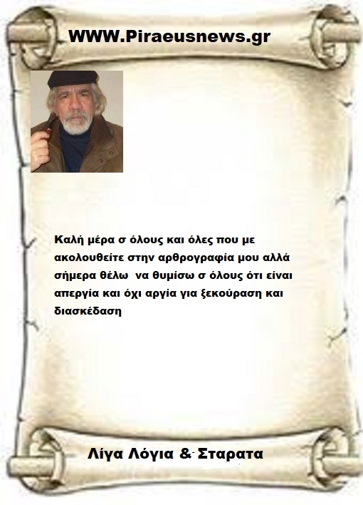 Καλή μέρα σ όλους και όλες που με  ακολουθείτε την αρθρογραφία μου αλλά σήμερα θέλω  να θυμίσω σ όλους ότι είναι απεργία και όχι αργία για ξεκούραση και διασκέδαση
